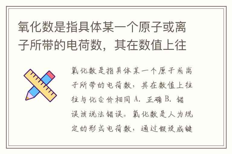 氧化数是指具体某一个原子或离子所带的电荷数,其在数值上往往与化合价相同 A. 正确 B. 错误