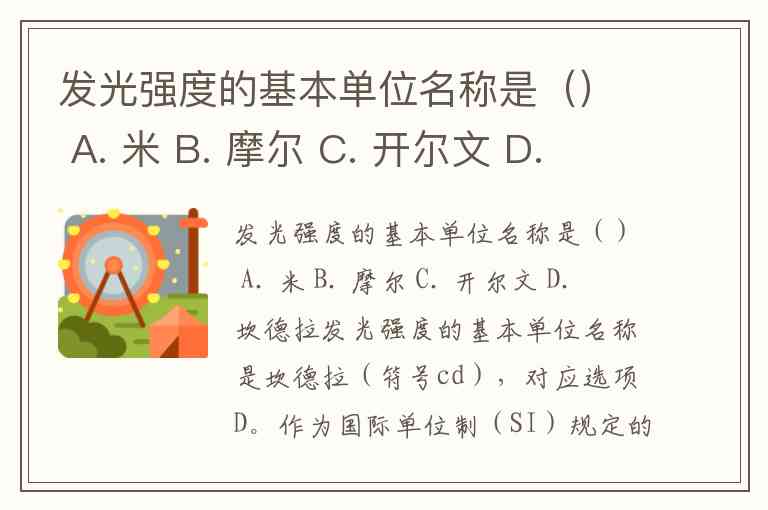 发光强度的基本单位名称是() A. 米 B. 摩尔 C. 开尔文 D. 坎德拉
