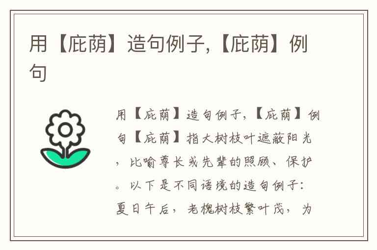 【庇荫】指大树枝叶遮蔽阳光,比喻尊长或先辈的照顾、保护。以下是不同语境的造句例子: