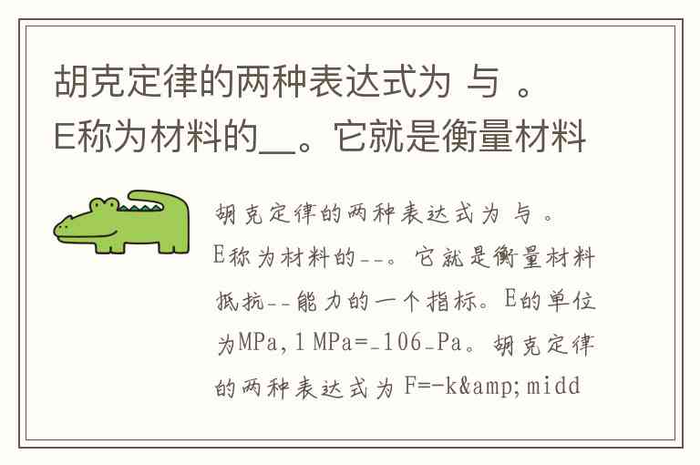 胡克定律的两种表达式为 与 。E称为材料的__。它就是衡量材料抵抗__能力的一个指标。E的单位为MPa,1 MPa=_106_Pa。