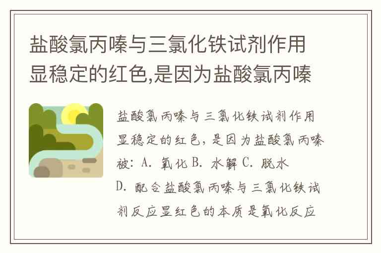 盐酸氯丙嗪与三氯化铁试剂作用显稳定的红色,是因为盐酸氯丙嗪被: A. 氧化 B. 水解 C. 脱水 D. 配合