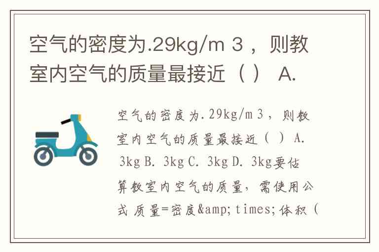 要估算教室内空气的质量,需使用公式 质量=密度×体积()。首先需明确两个关键值:空气密度和教室体积。