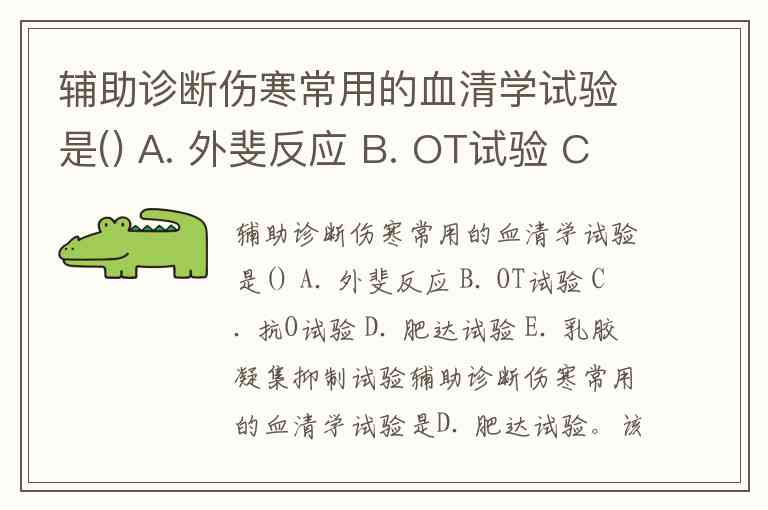 辅助诊断伤寒常用的血清学试验是() A. 外斐反应 B. OT试验 C. 抗O试验 D. 肥达试验 E. 乳胶凝集抑制试验