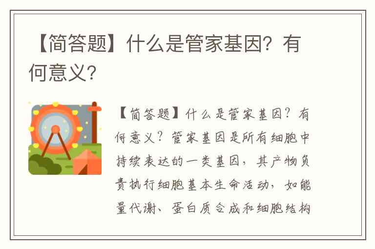 【简答题】什么是管家基因?有何意义?