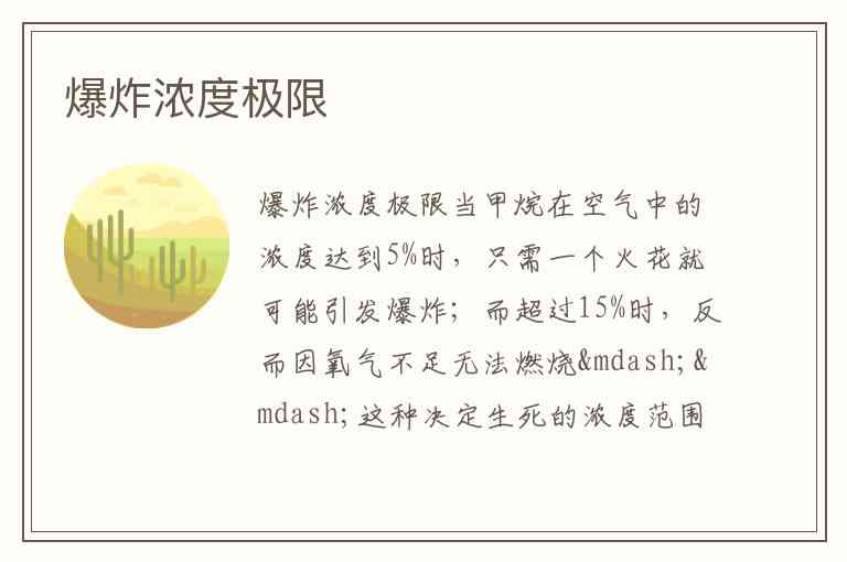 温度:温度升高使分子运动加剧,甲烷在100℃时的爆炸下限可能降至4.5%,上限升至16%;