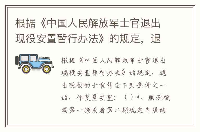 根据《中国人民解放军士官退出现役安置暂行办法》,士官退出现役作复员安置的条件可概括为自愿选择或未达更高安置标准两类情形。以下为具体分析及答案:
