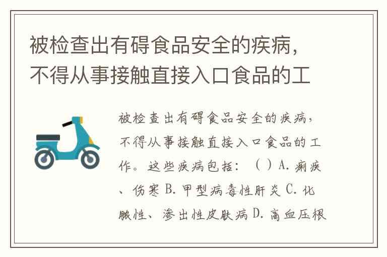 被检查出有碍食品安全的疾病,不得从事接触直接入口食品的工作。这些疾病包括:()A.痢疾、伤寒 B.甲型病毒性肝炎 C.化脓性、渗出性皮肤病 D.高血压