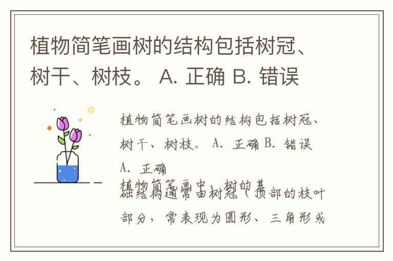 植物简笔画树的结构包括树冠、树干、树枝。 A. 正确 B. 错误