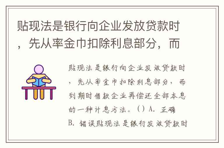 贴现法是银行发放贷款时预先从本金中扣除利息,到期时借款企业只需偿还本金的计息方式。题目中"偿还全部本息"的描述错误,因为利息已在放款时扣除,企业到期无需重复支付利息。