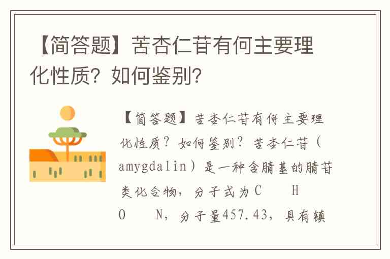 【简答题】苦杏仁苷有何主要理化性质?如何鉴别?
