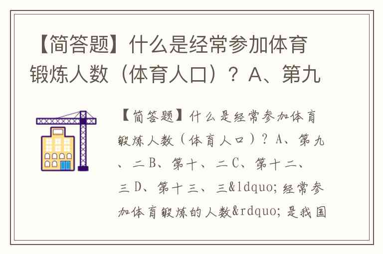 【简答题】什么是经常参加体育锻炼人数(体育人口)?A、第九、二 B、第十、二 C、第十二、三 D、第十三、三