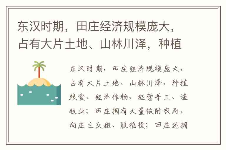 东汉时期,田庄经济规模庞大,占有大片土地、山林川泽,种植粮食、经济作物,经营手工、渔牧业;田庄拥有大量依附农民,向庄主交租、服徭役;田庄还拥有私人武装。据此能够得出东汉田庄经济的影响是()A.古代官营手工业经济的重要组成部分 B.古代中国农业自然经济的重要表现 C.古代国家分裂,中央集权的对立因素 D.古代封建经济发展的倒退,威胁统一