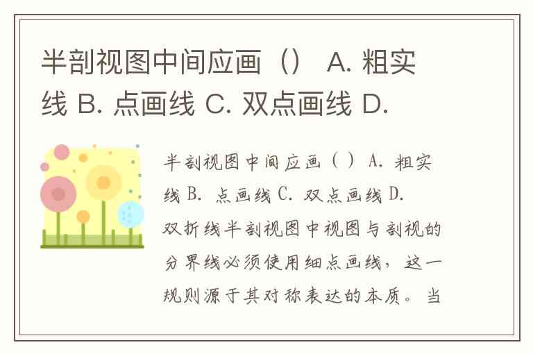 半剖视图中间应画() A. 粗实线 B. 点画线 C. 双点画线 D. 双折线