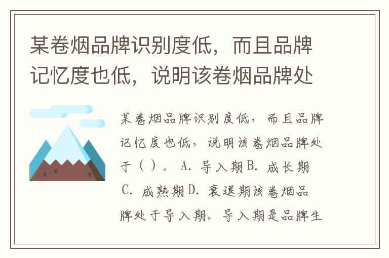 某卷烟品牌识别度低,而且品牌记忆度也低,说明该卷烟品牌处于()。 A. 导入期 B. 成长期 C. 成熟期 D. 衰退期