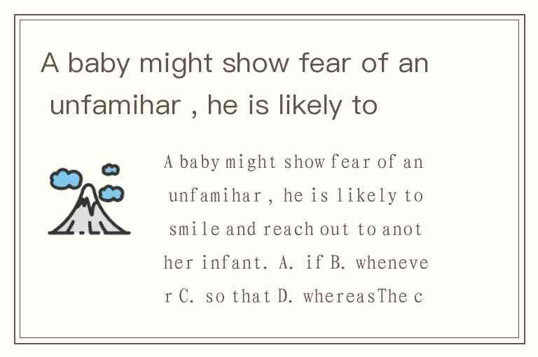 A baby might show fear of an unfamihar , he is likely to smile and reach out to another infant. A. if B. whenever C. so that D. whereas