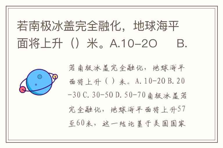 若南极冰盖完全融化,地球海平面将上升()米。A.10-2O B.20-30 C.30-5O D.50-70