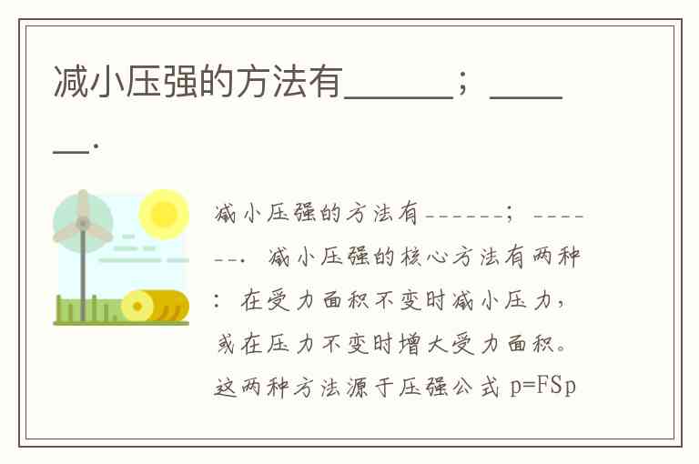 减小压强的核心方法有两种:在受力面积不变时减小压力,或在压力不变时增大受力面积。这两种方法源于压强公式 (压强=压力/受力面积)的直接推导——当压力(F)降低或受力面积(S)增大时,单位面积上的压力会减小。