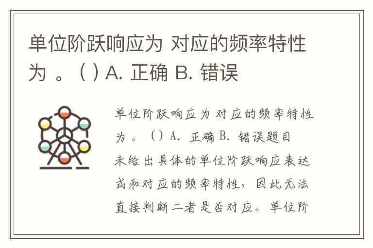例如,一阶系统传递函数 的单位阶跃响应为 ,其频率特性为幅频 、相频 。若题目中的阶跃响应与频率特性能通过同一传递函数关联,则正确;否则错误。