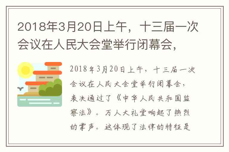 2018年3月20日上午,十三届一次会议在人民大会堂举行闭幕会,表决通过了《中华人民共和国监察法》。万人大礼堂响起了热烈的掌声。这体现了法律的特征是( ) A. 法律是由国家制定或认可的 B. 法律就在我们身边 C. 我们的生活与监察法息息相关 D. 法律面前人人平等