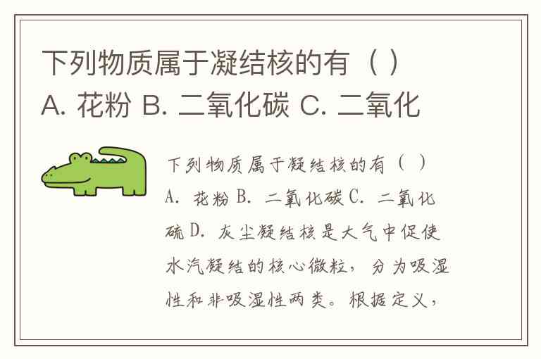 下列物质属于凝结核的有( ) A. 花粉 B. 二氧化碳 C. 二氧化硫 D. 灰尘