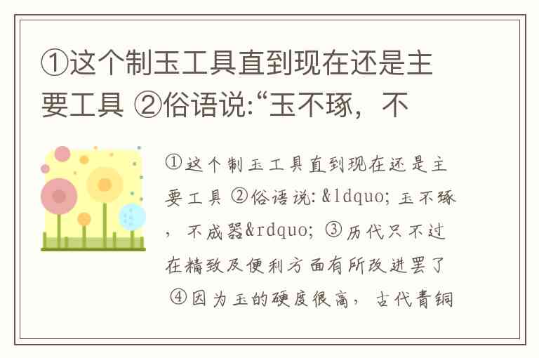 要解答这个题目,需抓住句子间的逻辑关系:先引出制玉话题,再解释制玉难点及解决方法,接着用考古证据说明工具历史,最后说明工具的延续性与改进。具体分析如下: