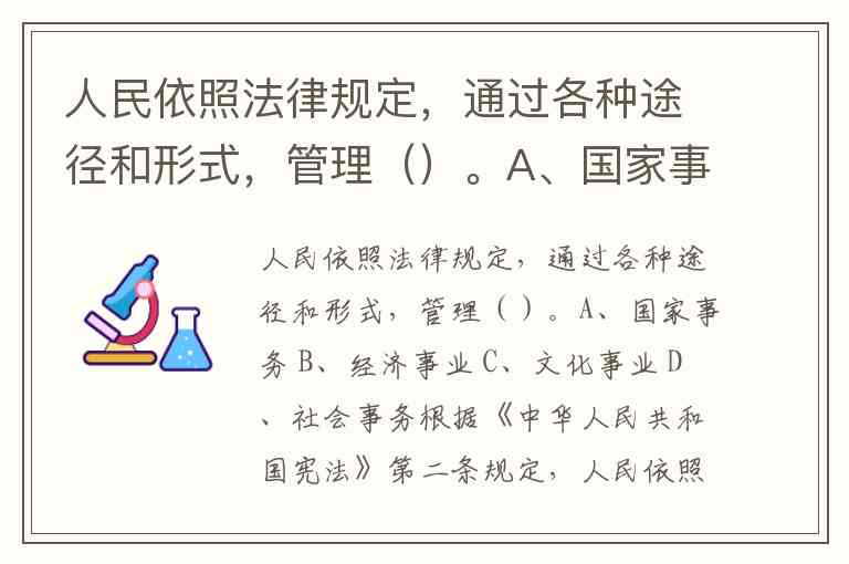 人民依照法律规定,通过各种途径和形式,管理()。A、国家事务 B、经济事业 C、文化事业 D、社会事务