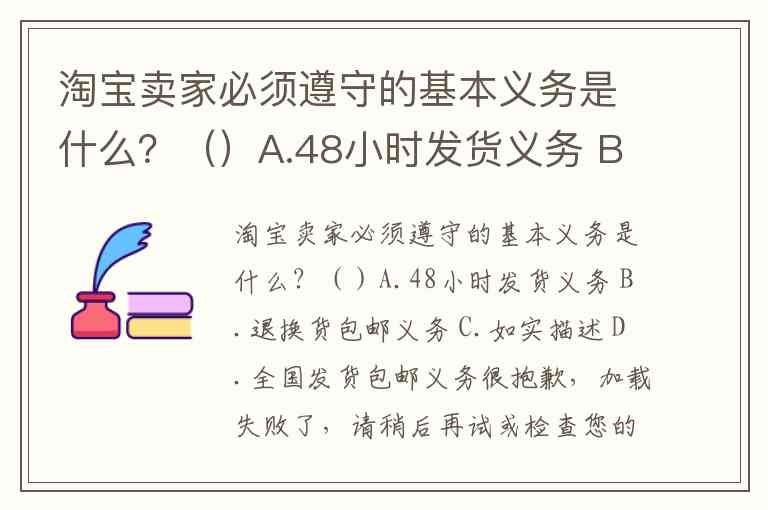 淘宝卖家必须遵守的基本义务是什么?()A.48小时发货义务 B.退换货包邮义务 C.如实描述 D.全国发货包邮义务