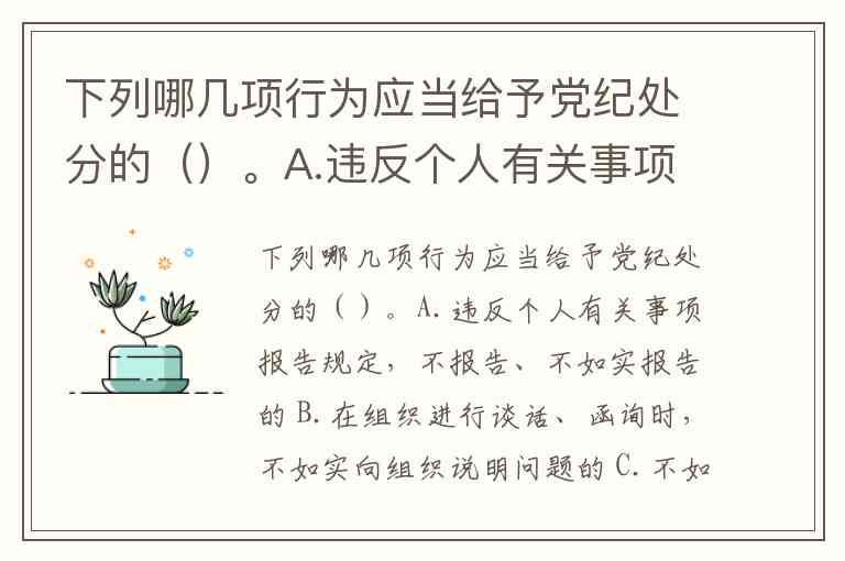 下列哪几项行为应当给予党纪处分的()。A.违反个人有关事项报告规定,不报告、不如实报告的 B.在组织进行谈话、函询时,不如实向组织说明问题的 C.不如实填报个人档案资料的 D.隐瞒入党前严重错误的