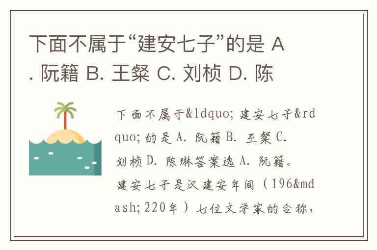 下面不属于“建安七子”的是 A. 阮籍 B. 王粲 C. 刘桢 D. 陈琳