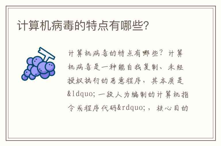 计算机病毒是一种能自我复制、未经授权执行的恶意程序,其本质是“一段人为编制的计算机指令或程序代码”,核心目的是破坏系统功能、篡改数据或影响计算机使用。这种程序通过模仿生物病毒的传播机制,演化出六大核心特征,使其成为信息安全领域的顽固威胁。