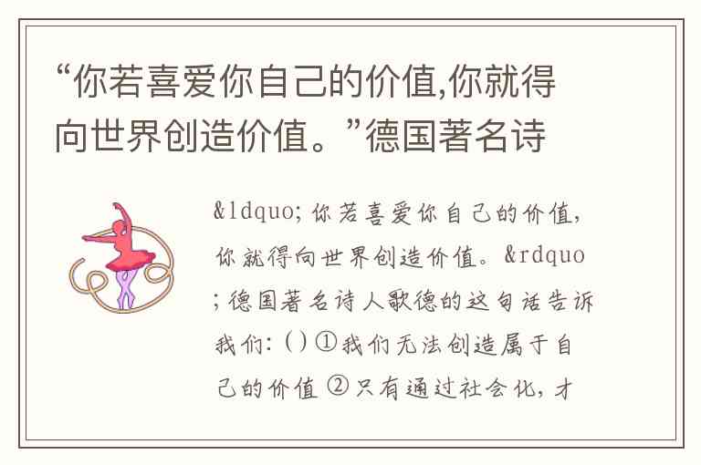 歌德这句名言揭示了个人价值与社会贡献的辩证关系:个人价值的实现离不开对世界的创造与奉献。这一观点与以下分析高度契合: