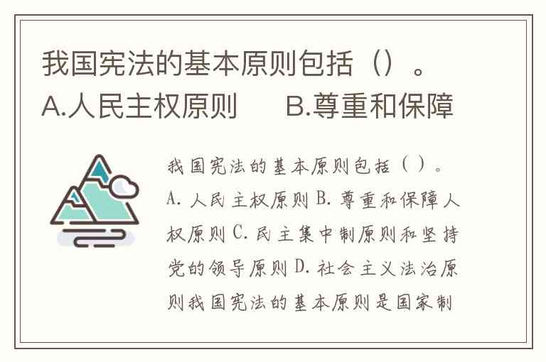 我国宪法的基本原则包括()。A.人民主权原则 B.尊重和保障人权原则 C.民主集中制原则和坚持党的领导原则 D.社会主义法治原则