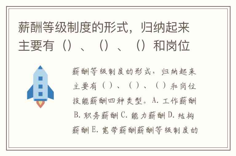 薪酬等级制度的形式,归纳起来主要有()、()、()和岗位技能薪酬四种类型。A.工作薪酬 B.职务薪酬 C.能力薪酬 D.结构薪酬 E.宽带薪酬