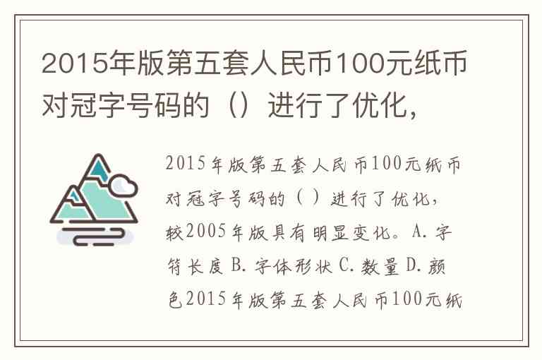 2015年版第五套人民币100元纸币对冠字号码的()进行了优化,较2005年版具有明显变化。A.字符长度 B.字体形状 C.数量 D.颜色