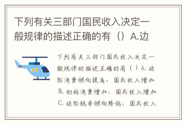 在三部门经济(家庭、企业、政府)的国民收入决定模型中,国民收入水平由总需求(消费+投资+政府支出)决定。以下选项均符合这一框架下的基本规律: