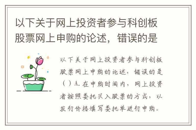 错误的论述是C选项。根据科创板申购规则,投资者只能使用一个证券账户参与网上公开发行股票的申购,同一投资者使用多个账户或同一账户多次申购同一只新股时,仅第一笔申购有效,其余均视为无效申购。这一规则旨在防止利用多账户重复申购、维护市场公平。