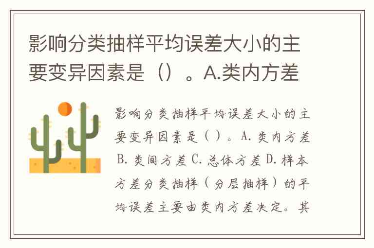 影响分类抽样平均误差大小的主要变异因素是()。A.类内方差 B.类间方差 C.总体方差 D.样本方差