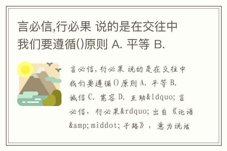 言必信,行必果 说的是在交往中我们要遵循()原则 A. 平等 B. 诚信 C. 宽容 D. 互助