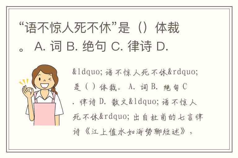 “语不惊人死不休”是()体裁。 A. 词 B. 绝句 C. 律诗 D. 散文