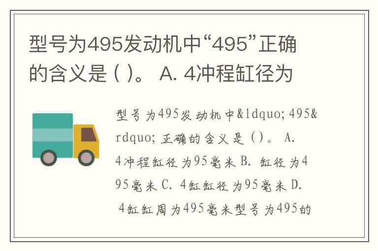 型号为495发动机中“495”正确的含义是 ( )。 A. 4冲程缸径为95毫米 B. 缸径为495毫米 C. 4缸缸径为95毫米 D. 4缸缸周为495毫米