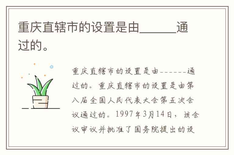 重庆直辖市的设置是由______通过的。