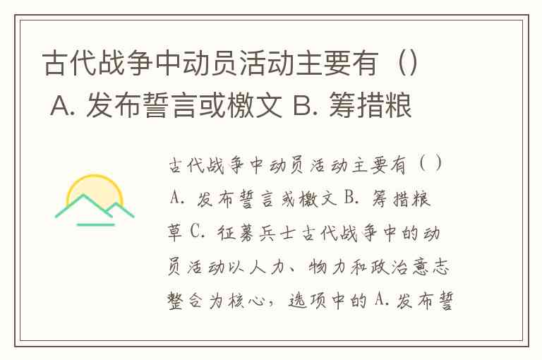 古代战争中动员活动主要有() A. 发布誓言或檄文 B. 筹措粮草 C. 征募兵士