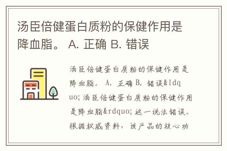 汤臣倍健蛋白质粉的保健作用是降血脂。 A. 正确 B. 错误