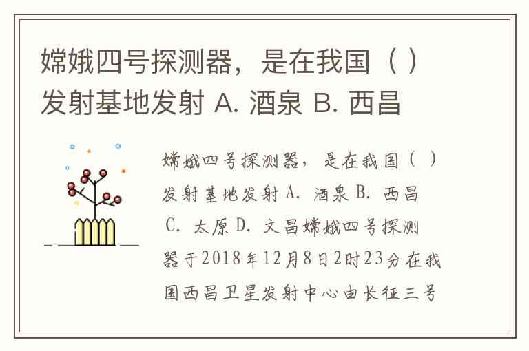 嫦娥四号探测器,是在我国( )发射基地发射 A. 酒泉 B. 西昌 C. 太原 D. 文昌