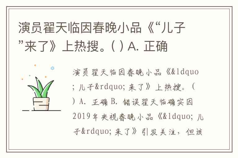 演员翟天临因春晚小品《“儿子”来了》上热搜。( ) A. 正确 B. 错误