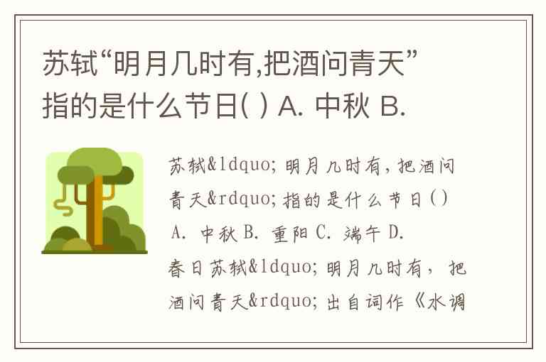 苏轼“明月几时有,把酒问青天”指的是什么节日( ) A. 中秋 B. 重阳 C. 端午 D. 春日