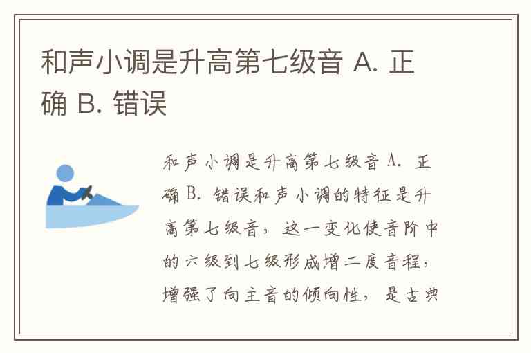 和声小调的特征是升高第七级音,这一变化使音阶中的六级到七级形成增二度音程,增强了向主音的倾向性,是古典音乐中常用的小调形式。因此,题目中的表述正确。