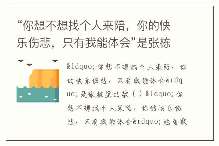 “你想不想找个人来陪,你的快乐伤悲,只有我能体会”是张栋梁的歌()