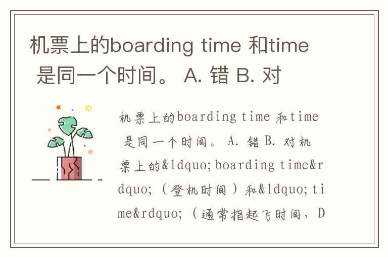 机票上的boarding time 和time 是同一个时间。 A. 错 B. 对