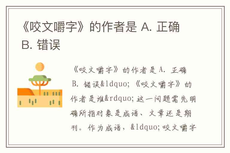 《咬文嚼字》的作者是 A. 正确 B. 错误